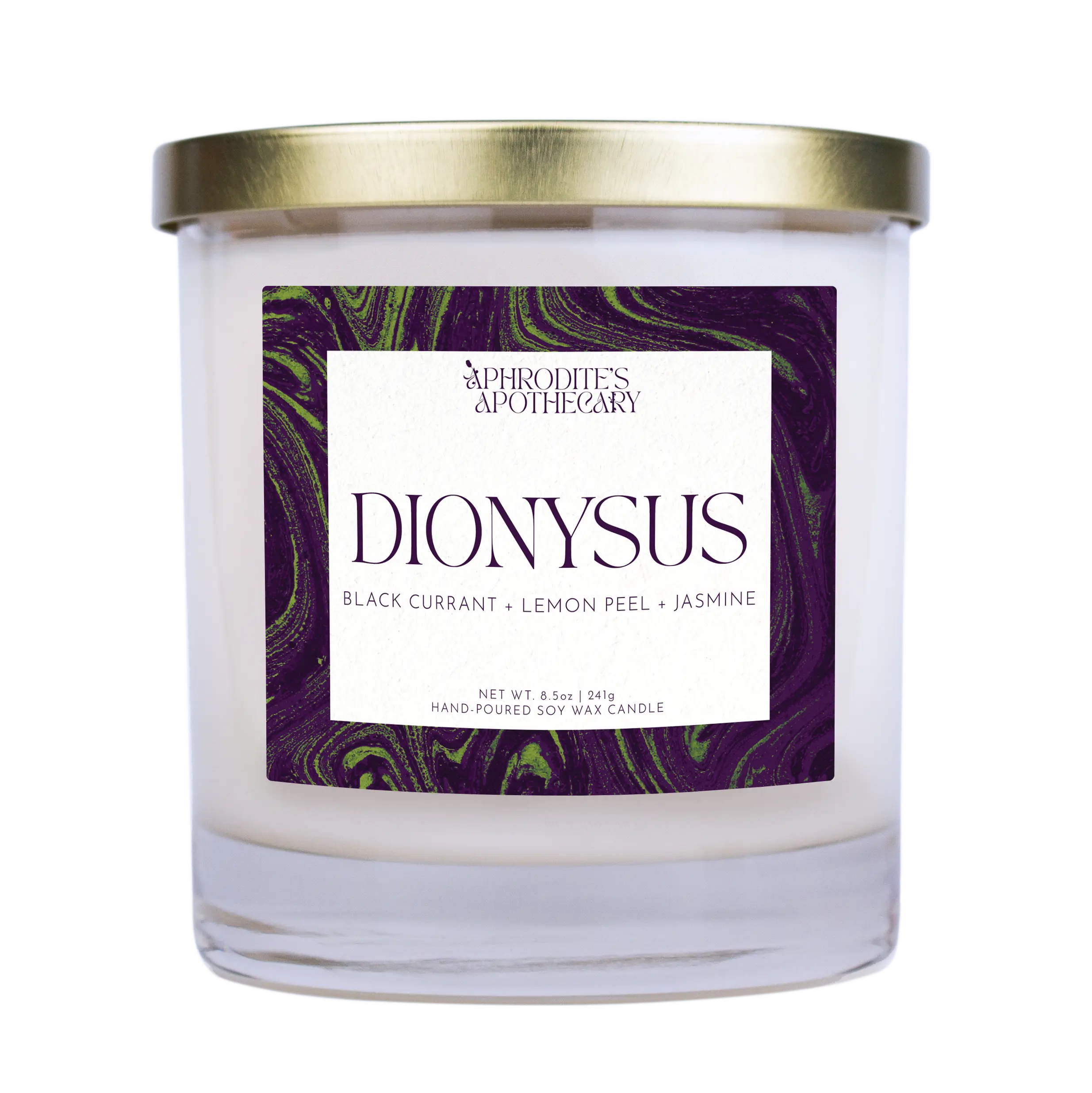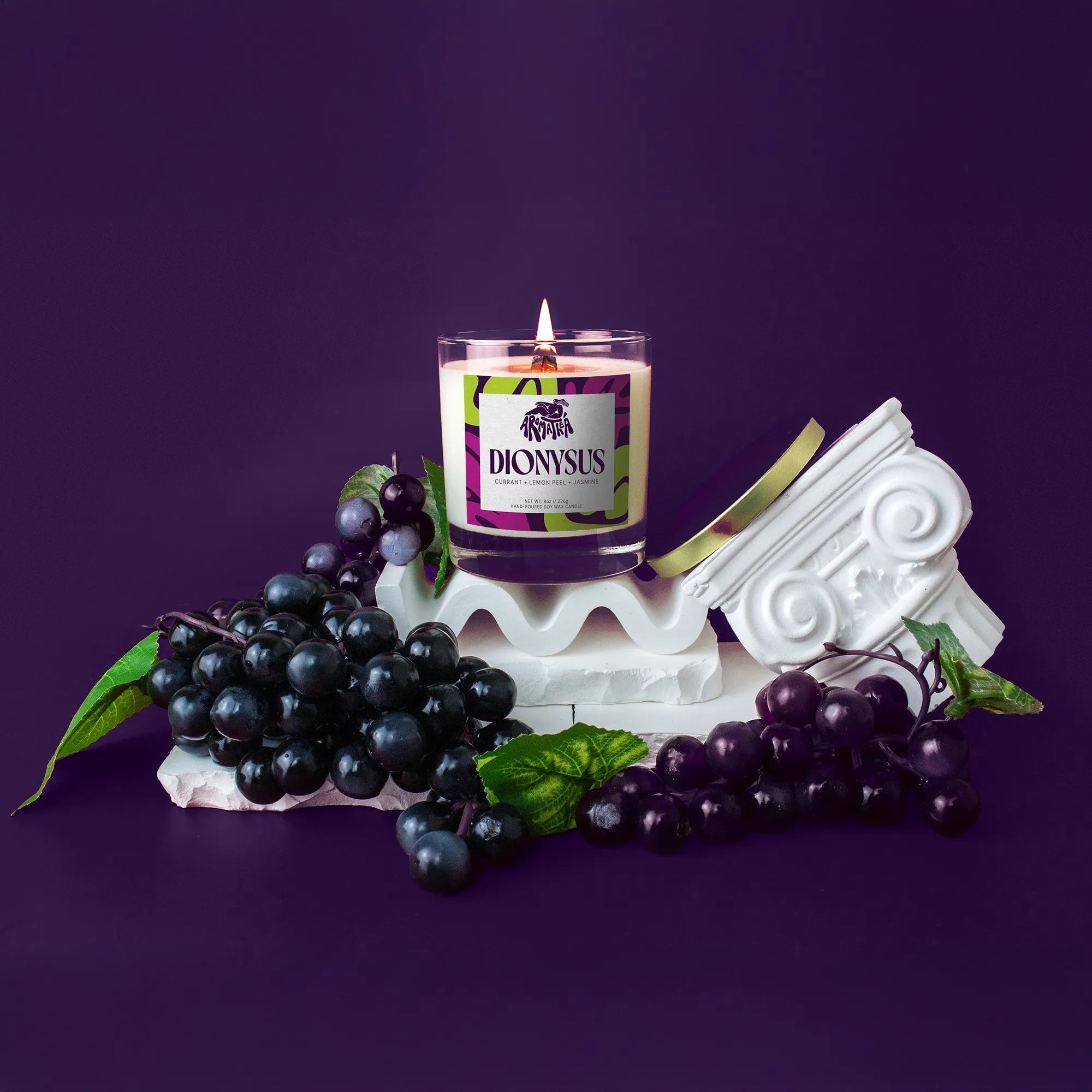 An indulgent combination of currants, lemon peel, and delicate jasmine, our Dionysus Candle evokes the feeling of a raucous bacchanal (but without the vicious hangover). Like a fine cabernet sauvignon, our Dionysus Candle is tart and complex, unlike more traditional fruit fragrances that can be cloyingly sweet or artificial. Dionysus was the only member of the official Greek Pantheon that was not a full-fledged god (Hestia gave up her seat on Mount Olympus for him). Dionysus ruled over wine, fertility, and madness -- and just like him, this candle sure is a party!